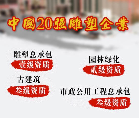 河北鑫特園林建筑雕塑有限公司成立于2002年,是中國(guó)雕刻之鄉(xiāng)——曲陽(yáng)縣的一家實(shí)力雄厚的大型雕塑公司,公司占地面積50000+平方米,年產(chǎn)值超過(guò)億元,具有雕塑總承包一級(jí)資質(zhì)、古建筑三級(jí)資質(zhì)、市政公用工程施工總承包三級(jí)資質(zhì)。
